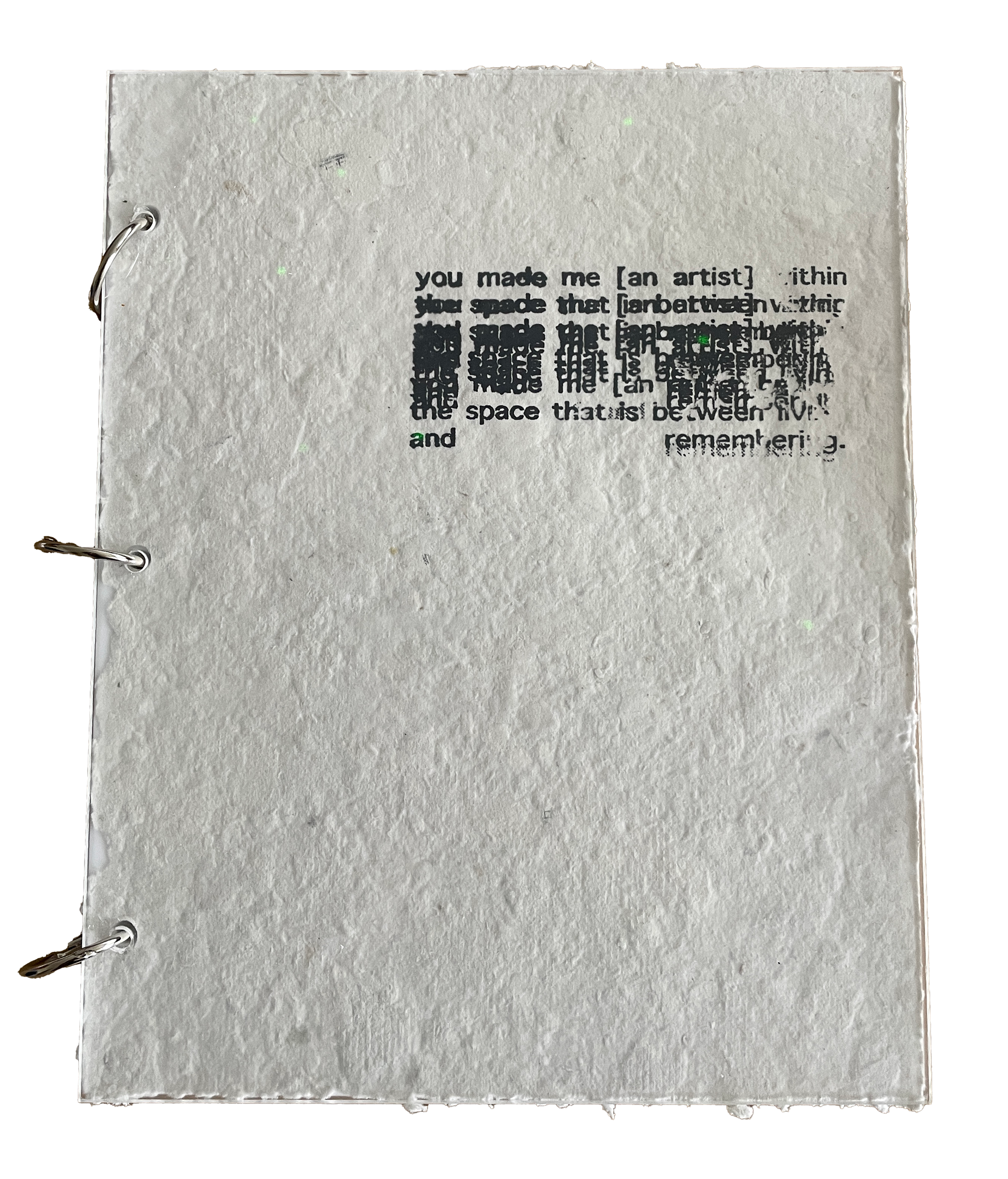 you made me [an artist] within the space that is (found) between living and remembering