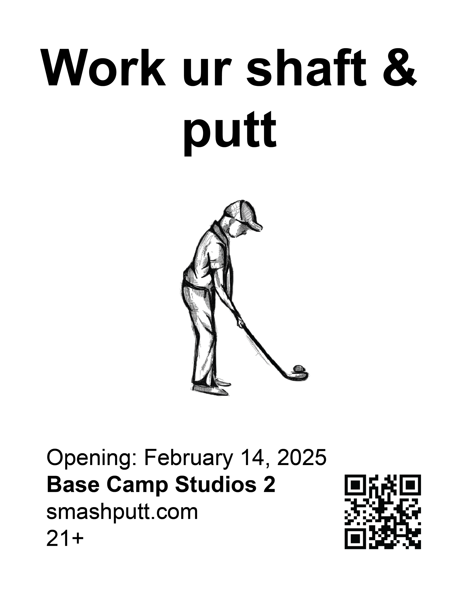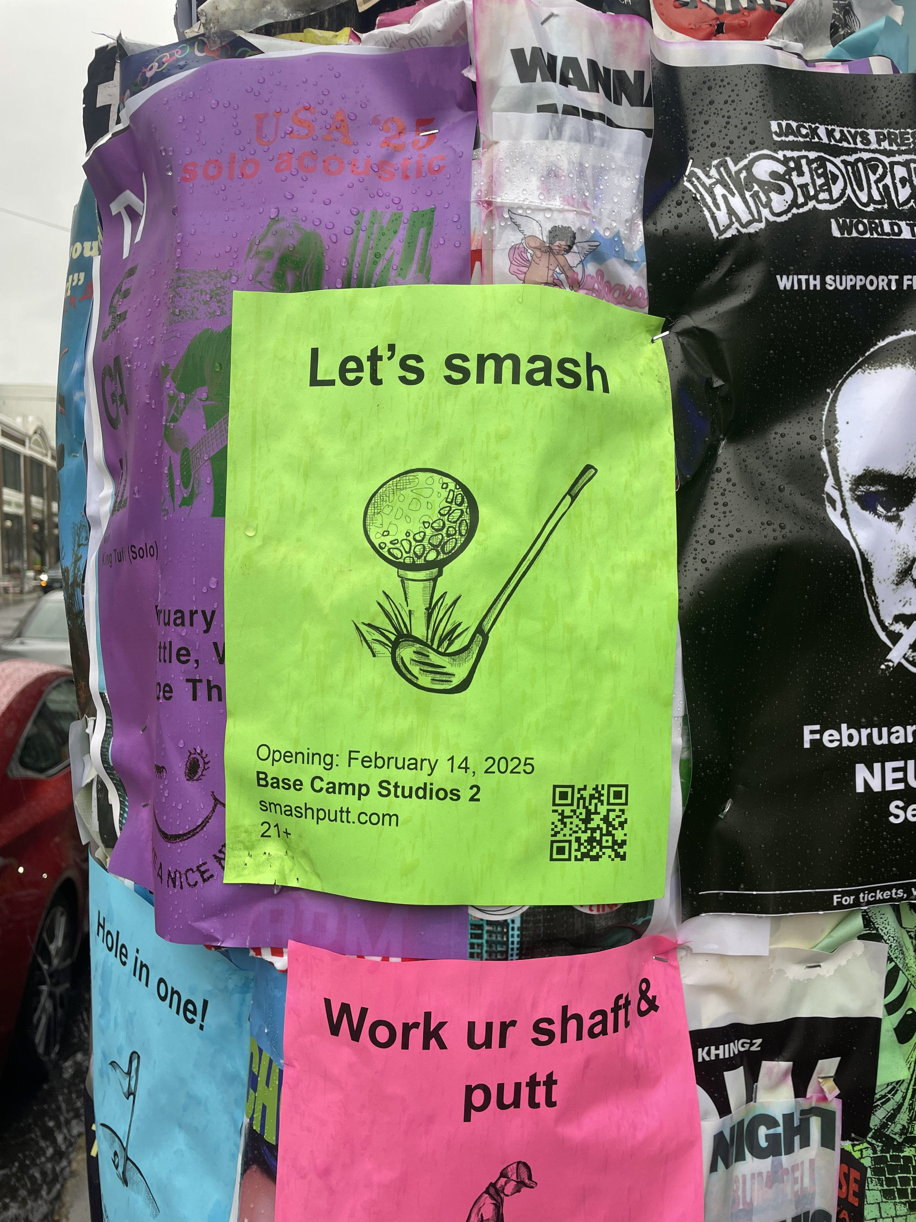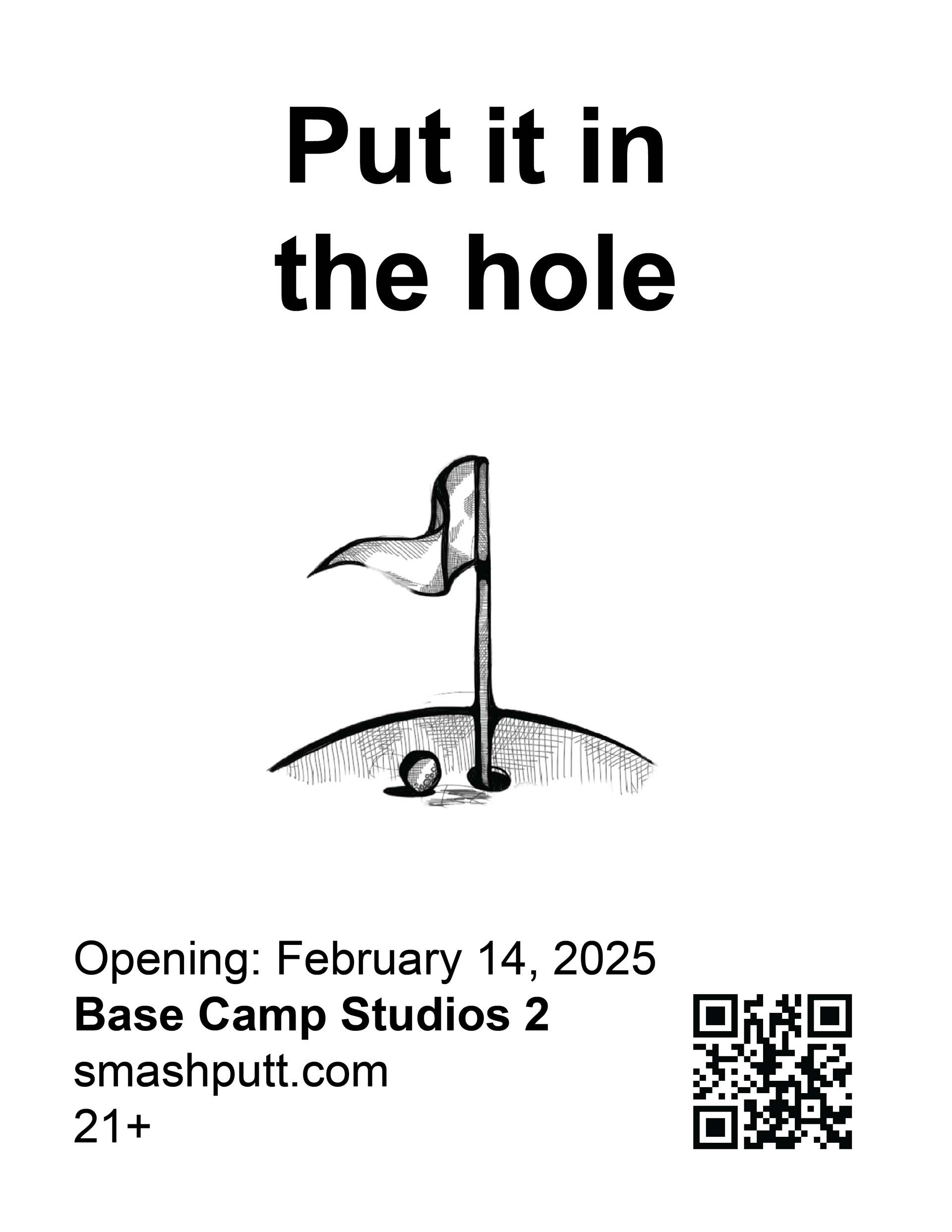 In collaboration with Base Camp Studio 2. Smash Putt's revival showcases 9 artist-made mini golf holes in March 2025 in Belltown, Seattle. Their branding plays off sexual inuendos and ironic absurdity.